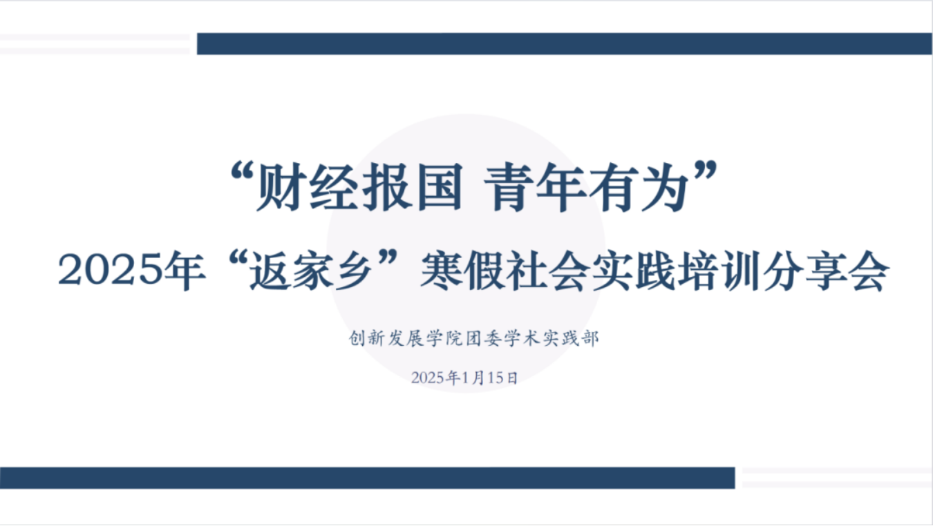 青年力行|公司举办“财经报国 青年有为”2025“返家乡”寒假社会实践培训分享会 为引领同学们深入实践、服务家乡建设发展,在实践中受教育、长才干、作贡献,帮助同学们更顺利地开展寒假社会实践,2025年1月15日,公司举办“财经报国 青年有为”2025“返家乡”寒假社会实践培训分享会。一、实践经验分享吴轩宇同学围绕实践准备、实践展开、总结与宣传三方面进行分享。实践准备方面,强调做好人员联络、时间协调、任务分配等筹备工作;实践开展方面,就宣讲活动等细节展开分享;总结与宣传方面,推荐注...
