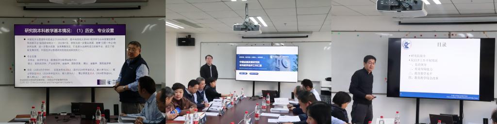 会上,三个研究院分别汇报了本科教学自评情况,内容涵盖本科教学概况、专业设置、当前在校生人数、团队队伍情况等。在自评部分,中国经济与管理研究院副经理裘骏峰报告了在优化课程设置、提升思政教育等方面的改进措施;中国金融发展研究院副经理赵阳报告了进一步加强教师政治理论学习、建立课程内容定期评审机制并鼓励教师学术交流、加强与企业合作建立校外实践基地等改进措施;中国公共财政与政策研究院副经理刘乐峥从加强教学督导规范性、改进评教方法、提升公司产品水平等方面,提出了改进措施。