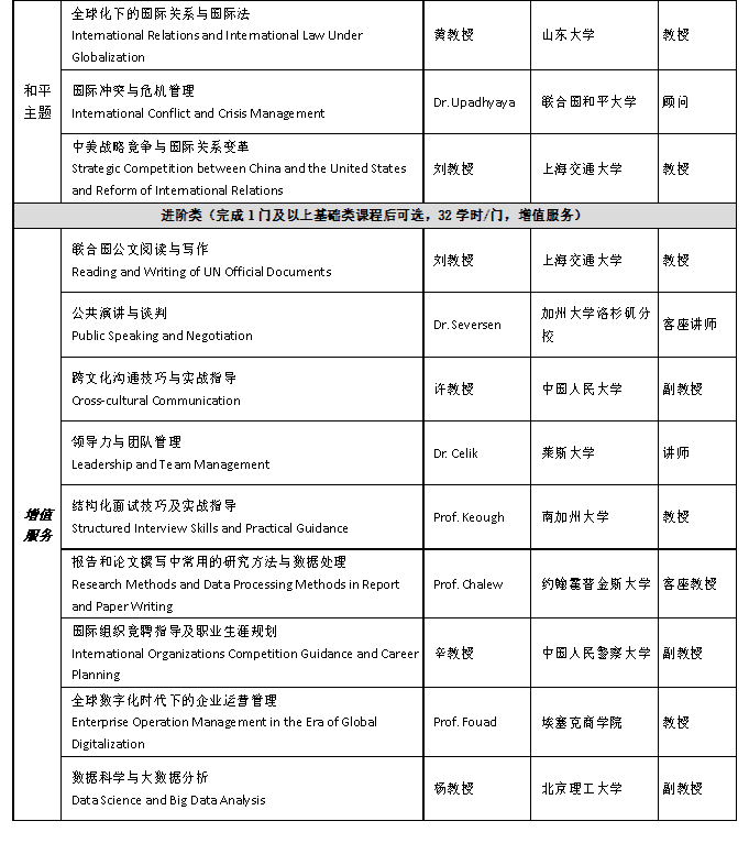 (3)进阶类、实践类课程,只有此前参与学习1门及以上全球治理课程并完课的同学可选。