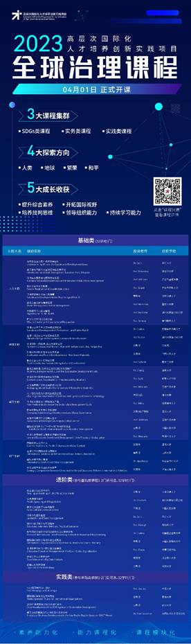 扫描下方海报二维码或在附件中(附件2:高层次项目2023春季学期全球治理线上课程大纲)可查看和下载每门课程简介及大纲。