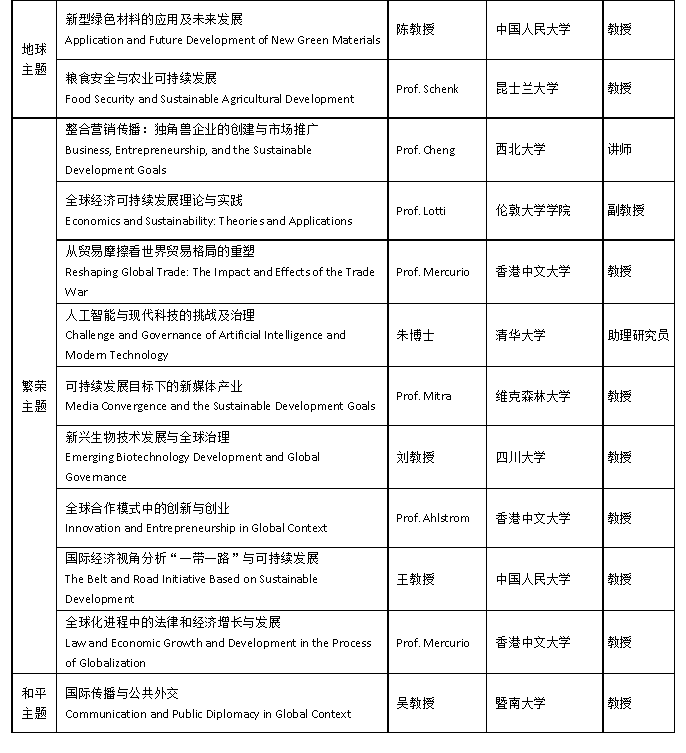 基础类课程由“人类、地球、繁荣、和平”四大主题模块组成,共26门,旨在夯实全球治理基础知识,兼具理论与实用价值,普适性高,所有年级研究生均可选择。