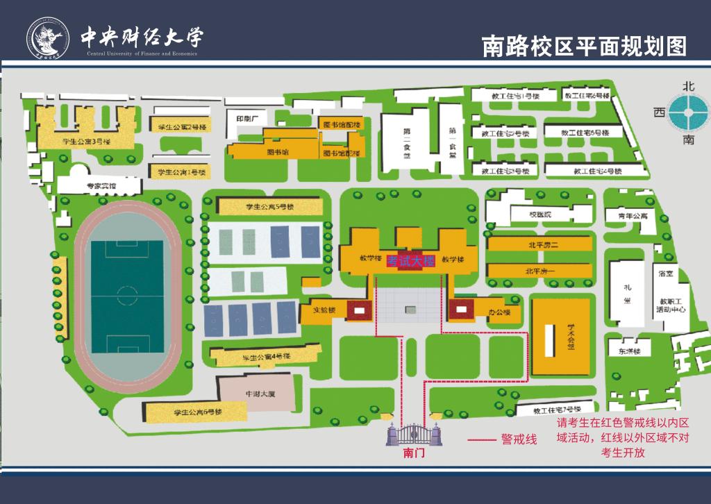 公司考试大楼设置在公司公司南路校区主教学楼,考场位置示意图见附件,公司考区内实行封闭管理,考区红框线外禁止考生进入。请考生根据本人准考证左下方的考场号,查看考场所在位置。每科考试结束后需尽快离场,勿要逗留。