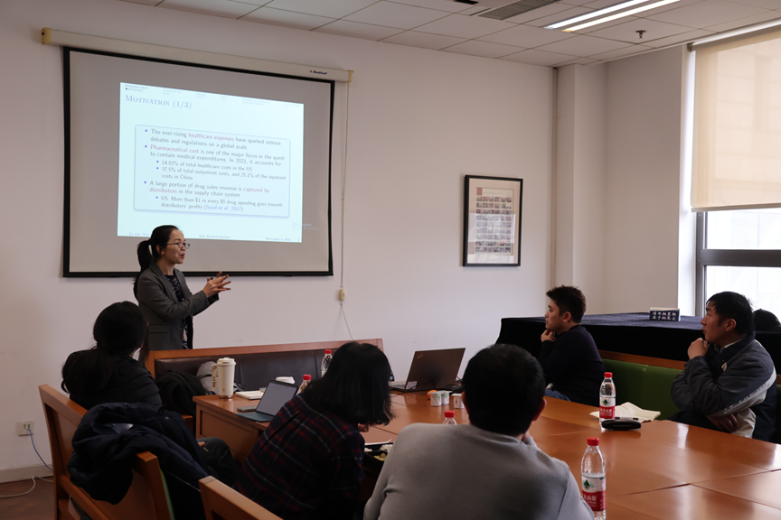 尹妮娜老师分享了自己的研究。研究利用2015-2018年的药品采购价格数据,实证分析了中国的“两票制”(TIS)改革对药品采购价格的影响。为了消除多级分销体系带来的超额利润,中国自2016年底开始实施“两票制”(TIS)——一个限制药品生产企业与医院之间的发票数量的政策。研究构建了一个供应链模型来描述制造商和零售商的药品定价和销售分配决策,随后利用各省在政策实施时间上的差异,采用交错双重差分法考察了TIS对药品价格的影响。结果表明,TIS不仅没有降低药品价格,反而增加了它,这表明TIS的实施产生了一些意想不到的后果。研究探讨了导致这一结果的两种潜在机制。一方面,价格上涨效应主要来自于欠发达地区,这表明供应链的缩短可能导致配送效率的损失;另一方面,在TIS实施后,医药制造企业的销售费用及其占销售收入的比重均有所增加,这表明TIS可能导致分销商的部分职能被纵向整合到生产商当中。