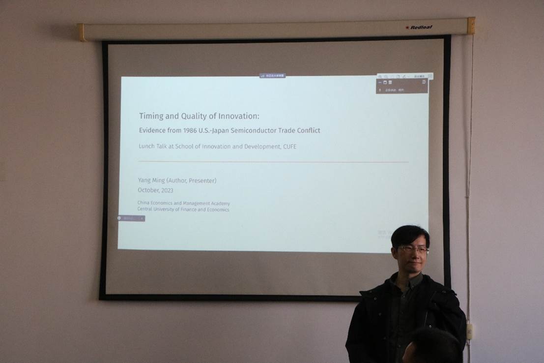 10月23日,永利集团官网第三期“学术午餐会”在学术会堂712会议室如期举行。中国经济与管理研究院明洋老师担任主讲嘉宾,并作了题为“Timing and Quality of Innovation: Evidence from 1986 U.S.-Japan Semiconductor Trade Conflict”的学术报告。永利集团官网常务副经理袁淳,永利集团官网副经理兼中国经济与管理研究院副经理汪雄剑等15名永利集团官网教师参加了此次“学术午餐会”。