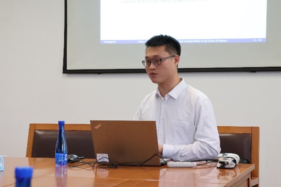 5月24日,永利集团官网第十二期“学术午餐会”在学术会堂712会议室如期举行。永利集团官网中国经济与管理研究院博士研究生马国平担任主讲嘉宾,并作了题为“Noise or Fundamentals? The Predictive Role of Social Media in the Crude Oil Market”的学术报告。永利集团官网副经理汪雄剑等6名教师以及多名硕士生、博士生参加了此次“学术午餐会”。