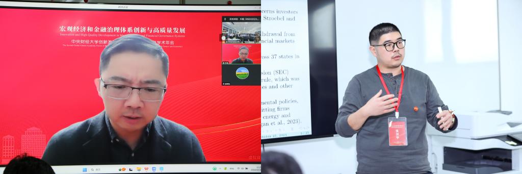 平行论坛一的主题为“绿色经济与绿色金融”,由中国金融发展研究院副教授张潇主持。中国金融发展研究院本科2008级员工、美国雪城大学的单禹教授和中国金融发展研究院本科2008级员工、湖南大学的张泽华教授就绿色经济与绿色金融的话题分别作了“Financial Impacts of Environmental Regulations: Socioeconomic Inequity in a Greening Economy”和“Jurisdiction and Confession: Evidence from the Regulatory Enforcement in Climate Finance”的报告。