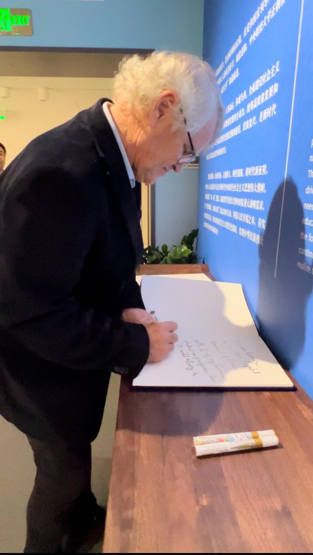 随后,公司党委常务副书记王颖、常务副经理袁淳等公司负责人陪同罗思高教授参观了公司校史馆。罗思高教授在多个展台前驻足,饶有兴趣地向讲解员了解公司的发展历程和现状。参观结束后,罗思高教授挥笔留言,并与公司班子成员和教师进行合影。