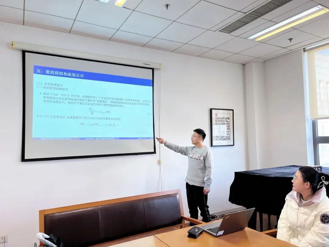 厦门大学冯翔宇老师点评了论文,建议细化杠杆率分化的实证分析,并提问了不同企业金融摩擦程度的差异在文中是如何刻画的,进一步建议在财政救助分析中增加道德风险的讨论。高崧耀同学回应了相关问题,并感谢在场老师和博士的宝贵意见。