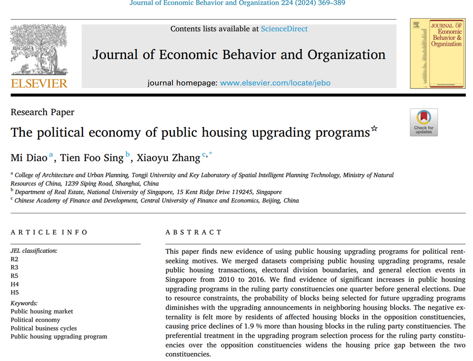 近日,公司张笑语助理教授的论文“Intergenerational bankruptcy risks: Learning from parents’ mistakes”和”The political economy of public housing upgrading programs”在国际权威期刊Journal of Financial Intermediation (ABS 4)和Journal of Economic Behavior and Organization(ABS 3,中财AA类)正式发表。论文的合作者为新加坡国立大学Sumit Agarwal和Tien Foo Sing教授,以及同济大学的Mi Diao教授。