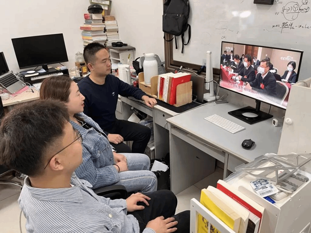 中国经济与管理研究院博士生党支部线上线下同步收看
