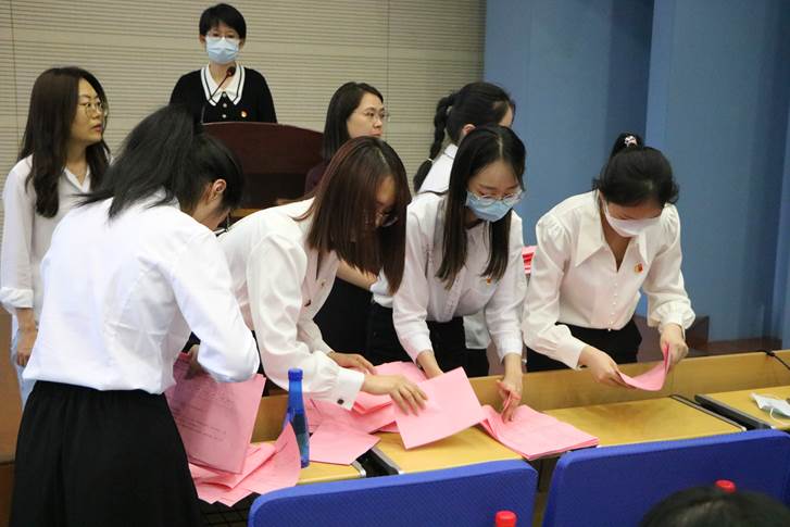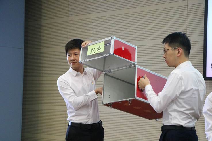 在总监票人和监票人的监督下,与会正式党员以无记名投票的方式进行差额选举。选举开始前,监票人检查投票箱并加封落锁。计票人领取选票并发放,正式党员填写选票。总监票人、监票人、总计票人、计票人与正式党员依次有序投票。投票完毕之后,计票人现场开箱清点选票,收回的选票数量与发放数量一致,符合选举办法规定。监票人和计票人共同前往计票室进行计票。