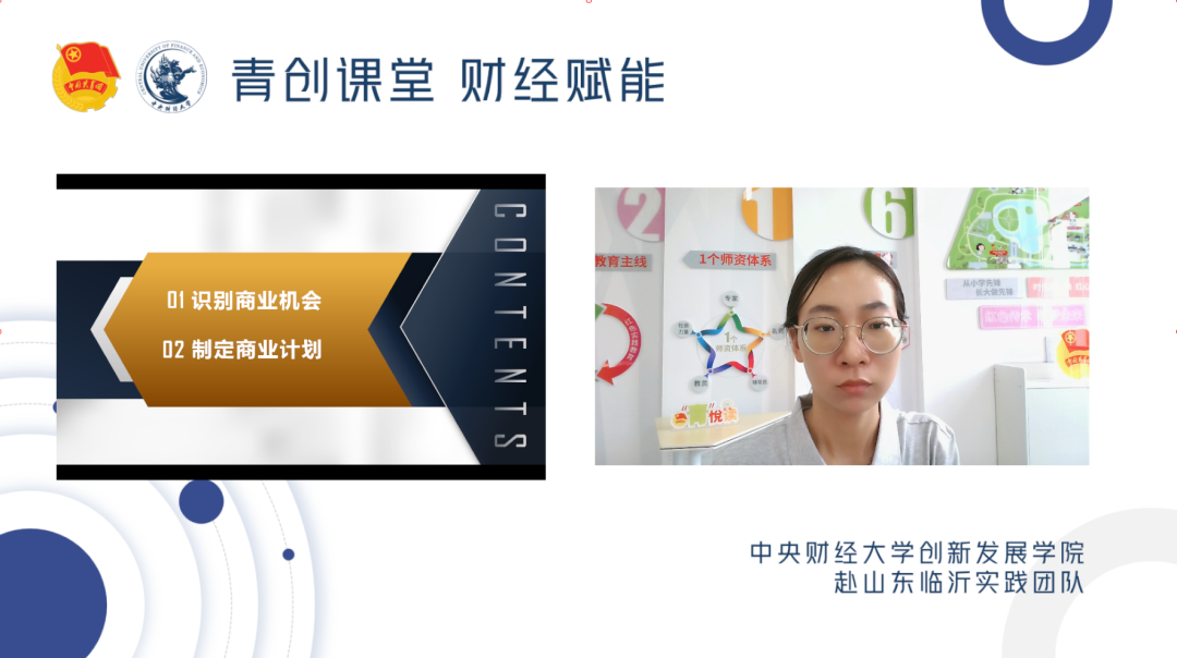 临沂市河东区团区委大力弘扬创客精神,鼓励青年投身发展大局,勇于创新创业。7月14日,实践团队以激励青年释放创业热情为目的,与团区委联合开展了“财经赋能青创课堂”。丁佳琦、韩一丹同学分别录制《识别商业机会》《制定商业计划》等专题课程,用专业知识为河东区创业青年成长赋能。