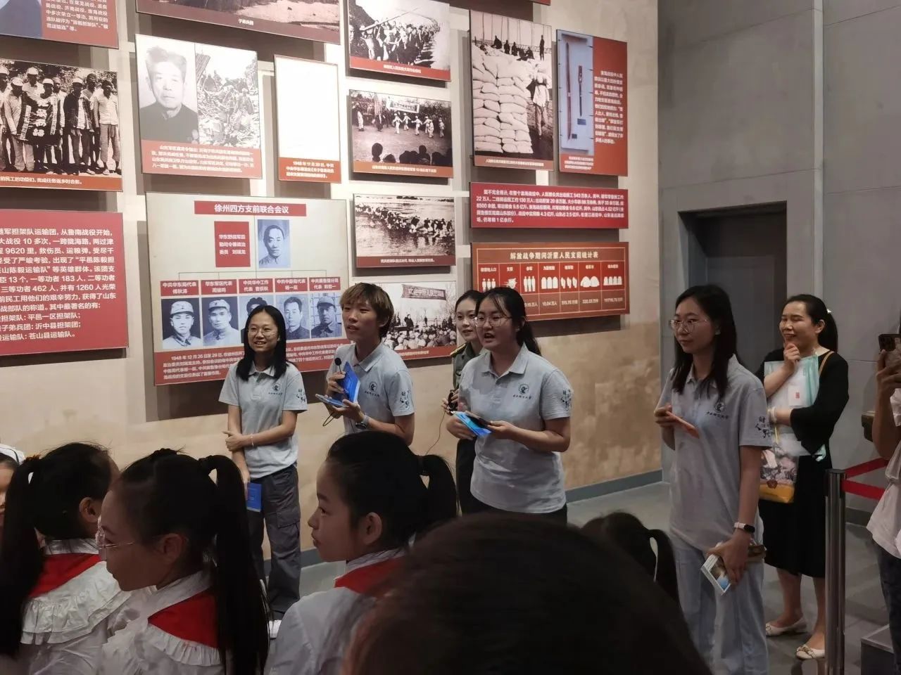 7月15日上午,实践团队再次来到华东野战军总部旧址暨新四军军部旧址纪念馆,面向纪念馆的“沂蒙红”红领巾志愿宣讲员团队开展红色思政课。