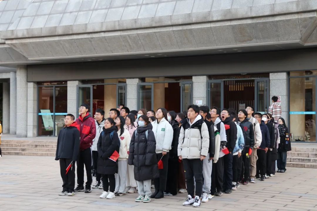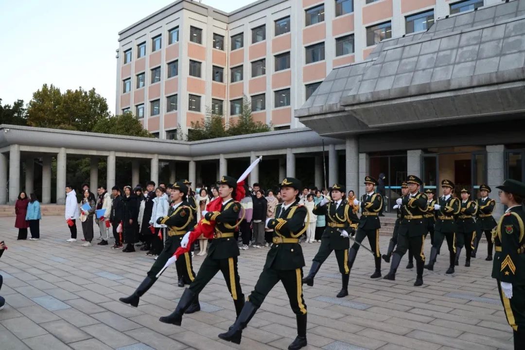 旭日东升,清晨寒风阵阵。国旗护卫队队员们整齐的步伐,将在场所有人的思绪都汇成一道。国歌奏响,冉冉晨光中,全体师生面向国旗立正肃穆,行注目礼,表达对祖国深深的敬意、祝福与热爱。