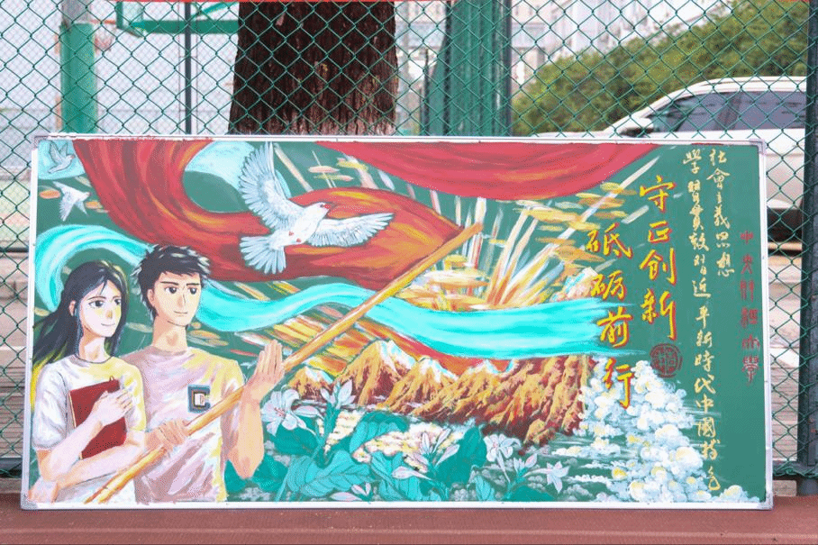 军训期间围绕“习近平新时代中国特色社会主义思想”“学思践悟二十大 青春奋斗正当时”“社会主义核心价值观”为主题开展了三次手抄报和板报评比。利用军训后的零散时间为板报设计绘制方案,准备过程中,同学们深刻领悟到社会主义核心价值观要聚集在精神层面,落脚在实践层面。开展社会主义核心价值观主题班会,班团委成员带领大家学习社会主义核心价值观的内涵,号召同学们从现在做起,从自己做起,使社会主义核心价值观成为自己的基本遵循。