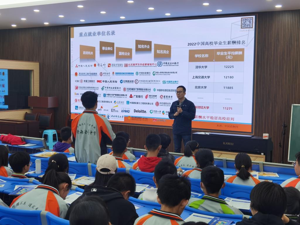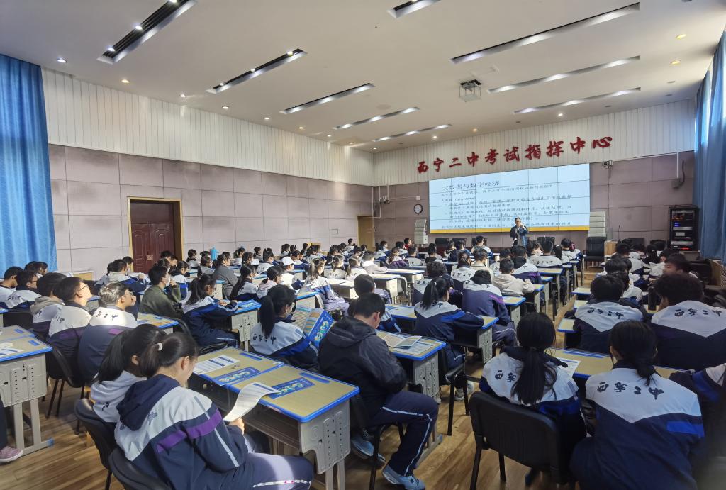 同期,招生组前往青海湟川中学开展优质生源基地校回访和宣讲。郭来特老师先后面向西宁市第二中学、青海湟川中学高中生开展了以“数字经济及其在生活中的应用”为主题的专题宣讲。讲座主题新颖,深入浅出,互动式的问答环节激发了同学们浓厚的学习兴趣。宣讲结束,同学们热情提问,老师们就同学关心的问题进行了耐心解答,全方位地展示了公司专业特色、团队力量以及就业前景。