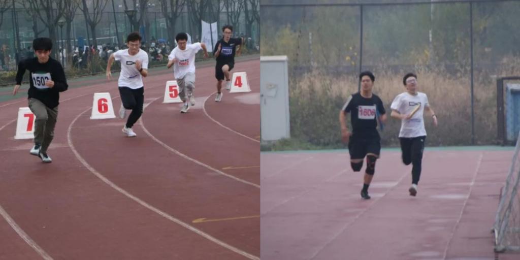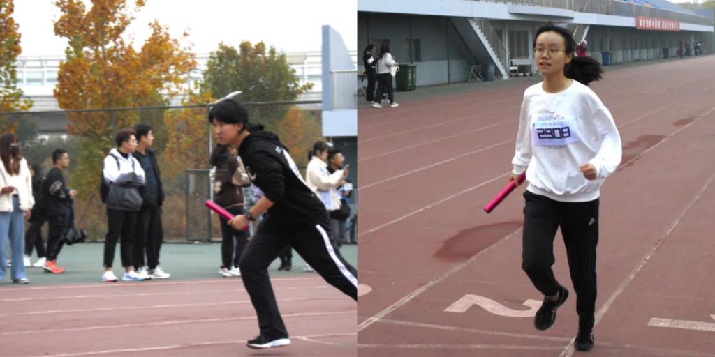 女子、男子200米、4*100米、4*400米接力以及之后的女子800米……竞技项目唤起新生内心的激情。跑道上热烈的欢呼,运动员急促的呼吸,在这运动盛会上,每个人都在努力突破自我,创造奇迹。当然,趣味项目也不会缺席,绑腿跑,旋风跑……欢声笑语中洋溢着青春的色彩,一次次的默契配合,一次次的相视而笑,拉近了我们之间的距离,彰显着合作的乐趣。