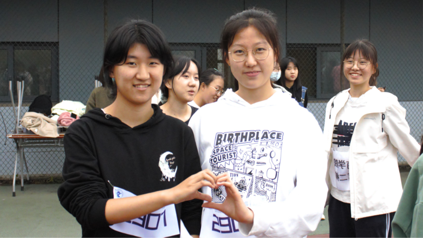 女子800米的运动员于慕桢和凌彬燕,于慕桢取得了第五名的好成绩,体育无输赢,赛场无大小,感谢凌彬燕在这次运动会中全力以赴,在跑道上坚韧的精神感染了每一位观众。