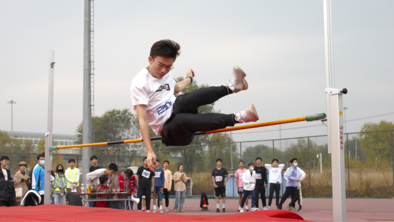 党一博奋战跳高的赛场上,一跃一跳展现青春力量。