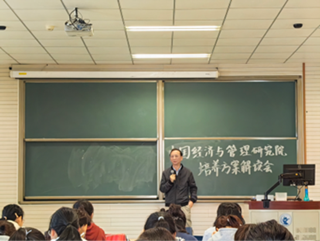 中国经济与管理研究院经理张定胜,中国金融发展研究院副经理赵阳,中国公共财政与政策研究院副经理刘乐铮老师,公司党委副书记林艺茹、2023级新生辅导员陈雪,各研究院教务老师郭思、孙书阳、王子逸,以及全体新生参加了培养方案解读会。