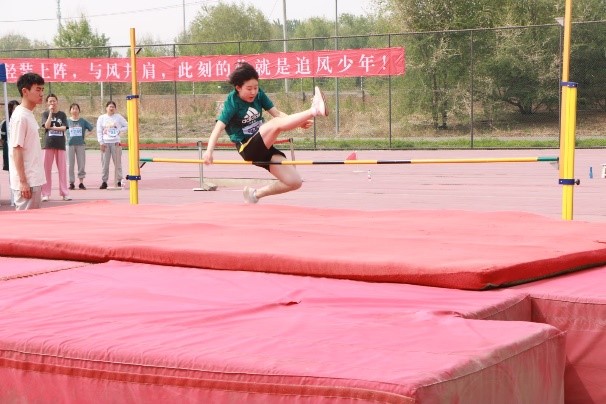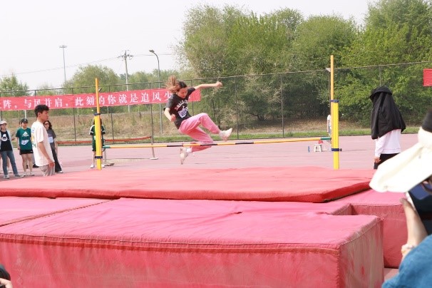 在女子跳远比赛中,方兰清、黄靖贻、陈晓、杨宇璇奋力拼搏,最终方兰清同学以4.150米的成绩摘得桂冠!在女子跳高比赛中牛丹妮、彭心阳的每一跳都展现出青春与活力,牛丹妮同学以1.22米的好成绩荣获第五名!她们的起跑迅速而有力,每一步都充满力量,当她们飞身跃出,那一刻的速度与激情在空中绽放。