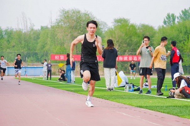 在男子200米决赛中,程昱嘉同学再显身手,尽管他已经参加了多个项目,仍不减斗志,在弯道实现超车,像旋风般冲过终点线,并最终获得了第七名的好成绩。