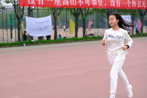 在男子1500米决赛中,张子尚同学获得了第六名的好成绩,将近四圈的漫漫长路,他在同学们的加油呐喊声中咬牙坚持,一步一步追赶超越,最终以胜利的姿态冲过了长跑的终点。