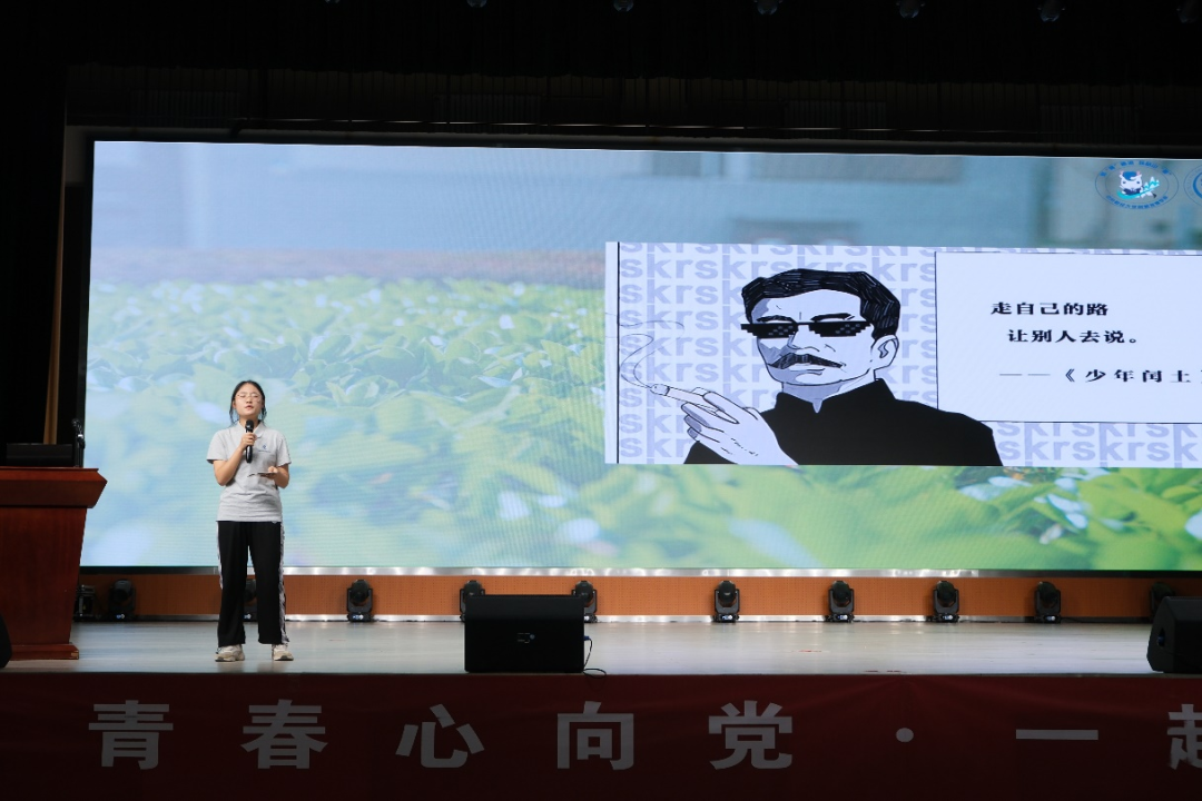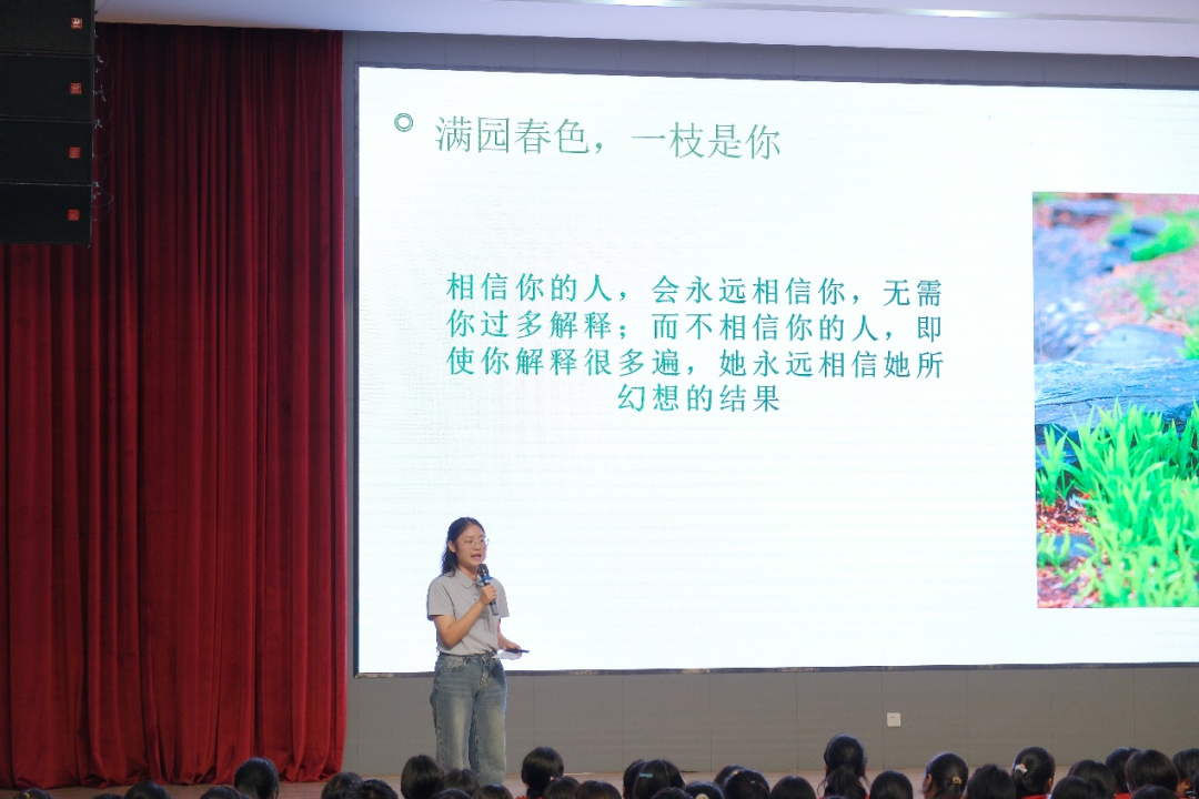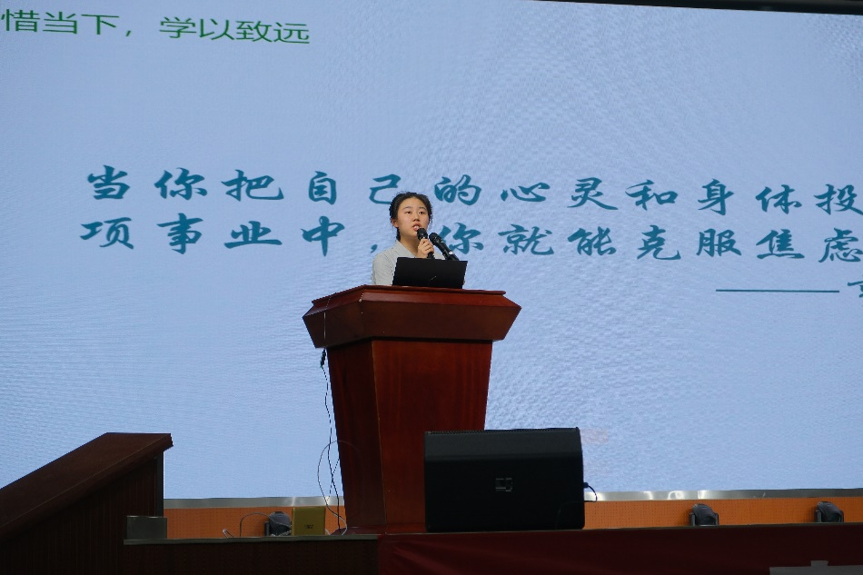 熊丹妮以“满园春色,一枝是你”为题带来宣讲。满园春色,总有一枝是你绽放的模样。每个人都独一无二,别让焦虑遮蔽了前行的道路。她讲述了自己的高中经历,鼓励大家要勇于面对内心的困扰与挣扎,坚定信念、勇往直前。“你若盛开,蝴蝶自来”。