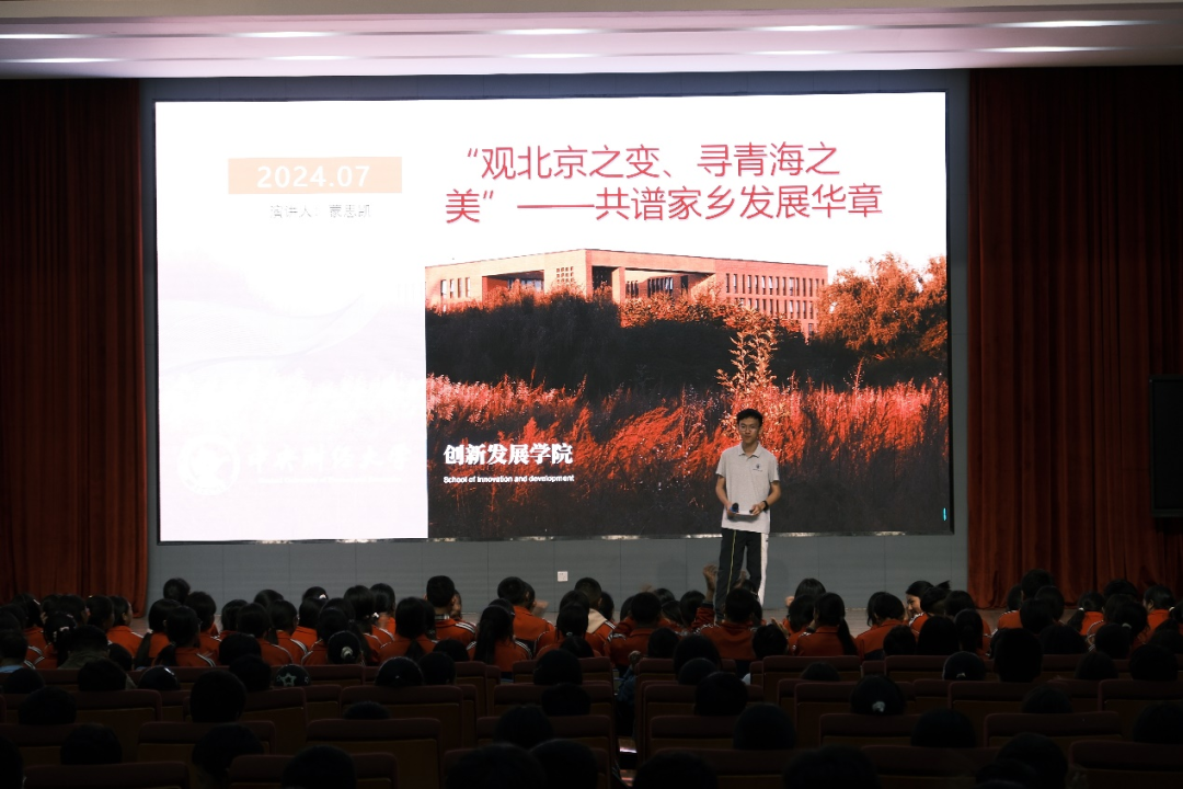 蒙思凯带来以“观北京之变、寻青海之美”——共谱家乡发展华章为主题的宣讲,从奥运场馆的建设、交通与空气质量的改善以及科技创新的应用展现北京“双奥之城”的魅力,同时以高三攀爬长城的故事为例,鼓励同学们面对高考和中考要坚定信念,攻破这场“持久战”。每一个城市的繁荣背后,都是无数个普通人不懈的努力和奋斗,只有我们怀揣梦想、勤奋学习,才能书写属于自己城市的辉煌篇章。