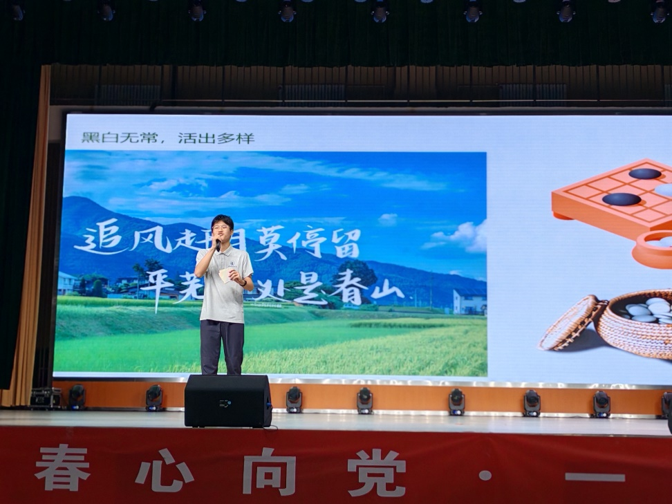 李涵以围棋为喻,探讨了人生中的挑战与机遇。他从童年学习围棋开始,回顾了自己与定式的斗争,以及如何从失败中汲取教训。人生如同围棋棋盘,充满无限可能性和不确定性,每一步棋都可能是决定性的转折点,他揭示了定式与创造力之间的矛盾,呼吁同学们不要被规则所束缚,勇敢面对生活的挑战,成为自己人生的游戏规则制定者。