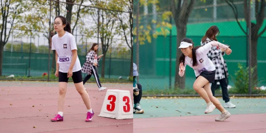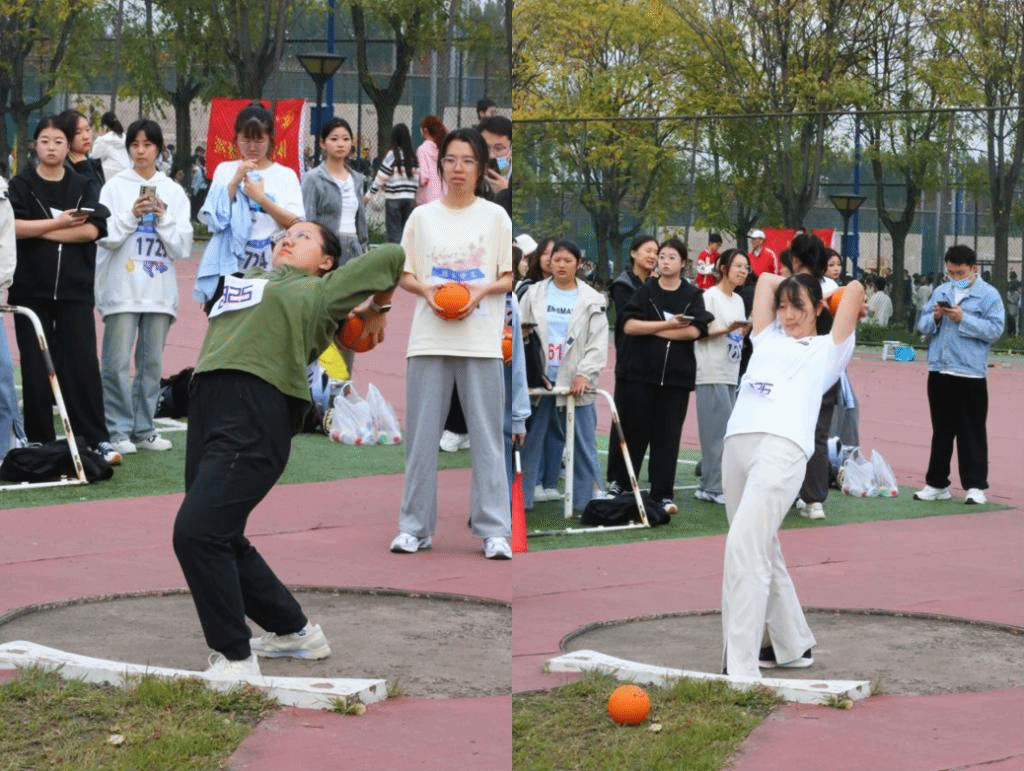 史芮琪和曹艺宁两位女生参赛。踏入投掷区,站定,调整呼吸,预摆后倾,猛然蹬地,实心球在空中划出一道优美的抛物线。她们努力拼搏、挥洒汗水,充分展现出了运动员向上追求成绩的运动精神!