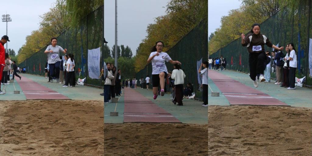 跳远项目不仅是纯粹的腿部力量博弈,而是对于运动员们起跑、跨步、跳远等动作一气呵成的考验。本次女子跳远项目创发由闫栩雯、黄子珊、黄静岩三名同学组队参赛。每位运动员努力拼搏,奋力起跳,达到了自己的最好。三位同学表现优异,黄静岩同学更是以3米67的优异成绩取得了女子跳远第三名图片