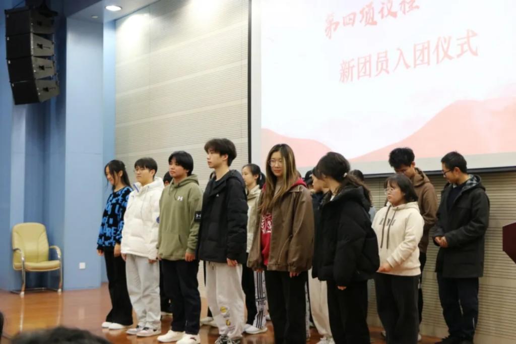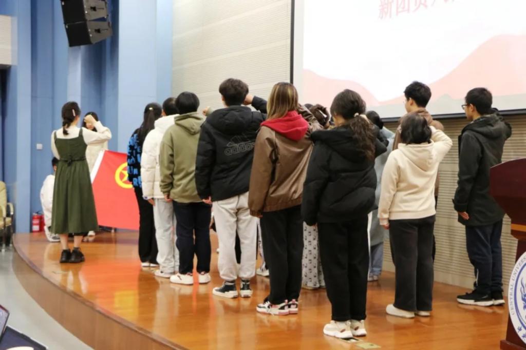 2024年度,永利集团官网有27位同学加入了中国共产主义青年团,成为一名光荣团员。入团仪式上,团委书记巴蕾、团委副书记巩家姝为新团员颁发团徽。在何汇洋同学的领誓下,新入团团员在团旗的见证下庄严宣誓。