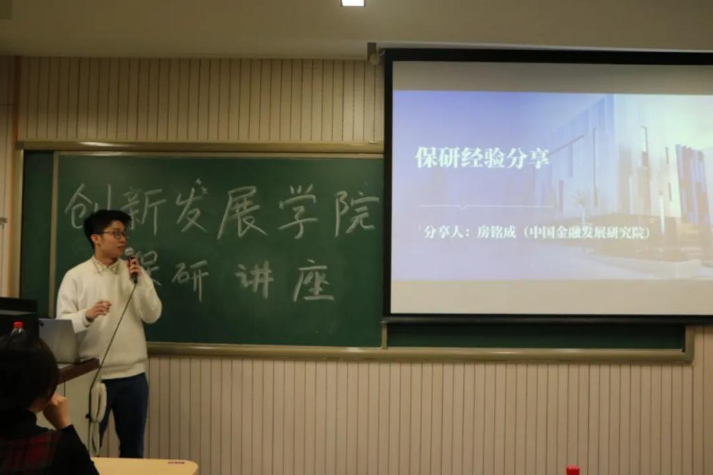 房铭成同学(国际金融与公司理财)已保研成功,即将进入北京大学光华管理公司攻读金融专业硕士学位。他提出了学业重要性的一个排序:“排名优先于英语,英语优先于科研,科研优先于实习”。此外,房铭成同学还总结了自己在清华经管MIM、北大光华以及复旦管院MIF的面试经历,向同学们阐释了在不同高校面试过程中可能面临的挑战。