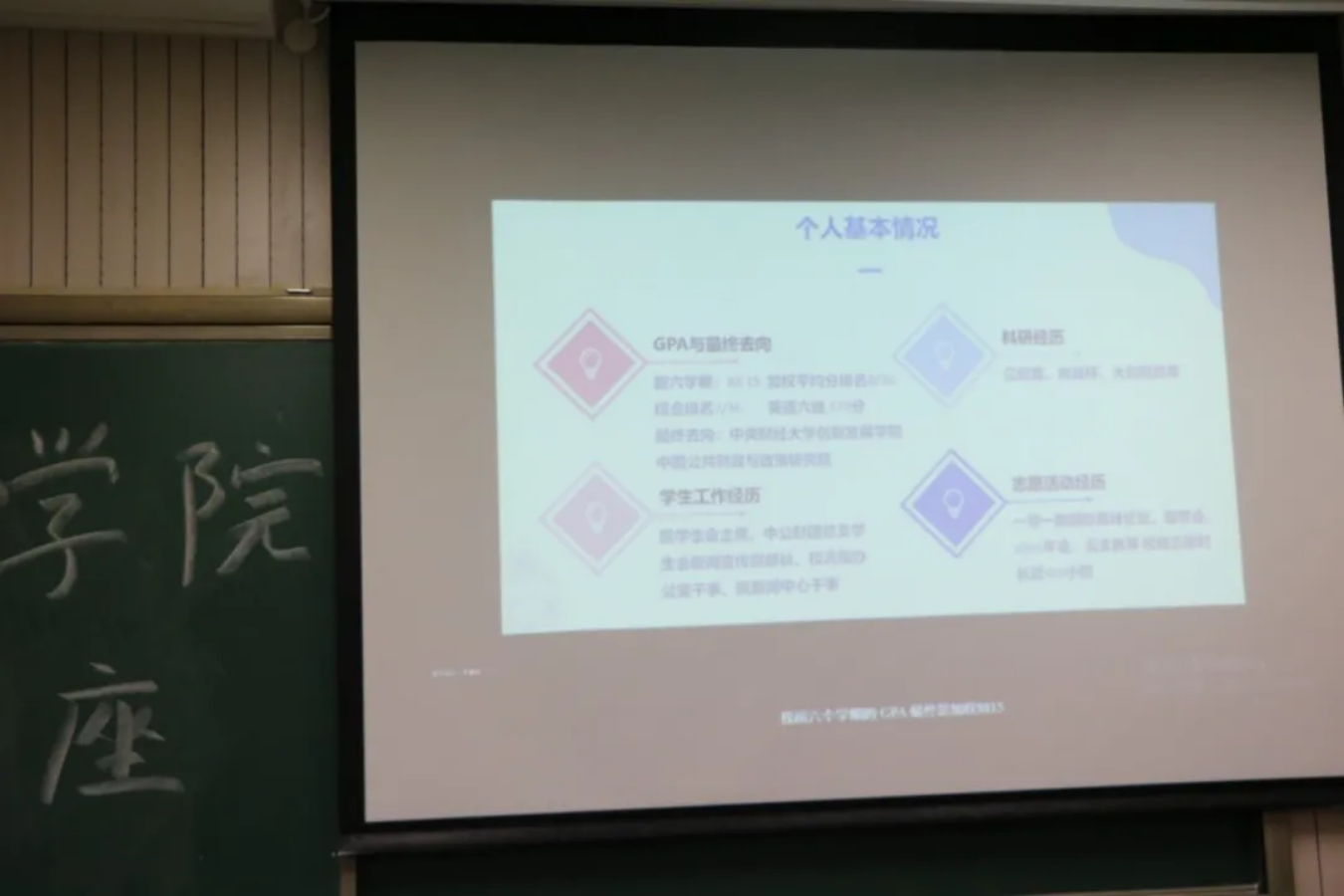 赵俪婷同学(国际金融与公司理财)已保研成功,即将进入永利集团官网的中国金融发展研究院攻读金融专业硕士学位。她对公司现行的保研政策进行了介绍,从院内保送角度概述了在不同阶段应做的准备工作以及如何调整心态以应对保研过程中的挑战。最后,她鼓励大家:“此去山重水复,愿诸位轻舟终过万重山。”