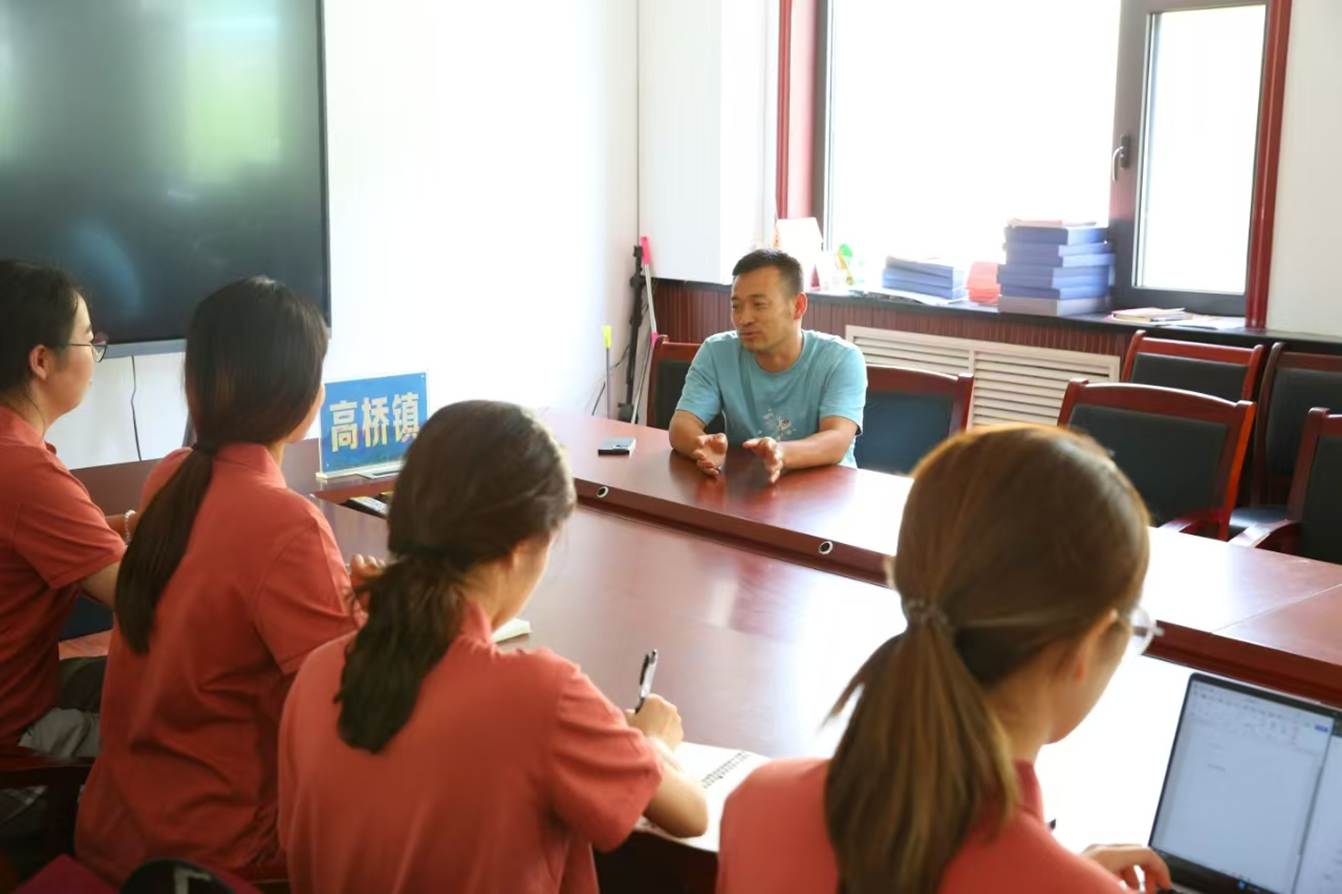 随后实践团队走进高桥镇政府,聚焦区域发展挑战与工作人员开展座谈。团队了解到:尽管当地果蔬品质优良、口碑稳固,但普遍面临劳力短缺、农户抗风险能力弱以及红色资源待开发等难题。针对上述问题,镇政府正积极探讨解决方案,谨慎探索新品种试种以形成特色优势。