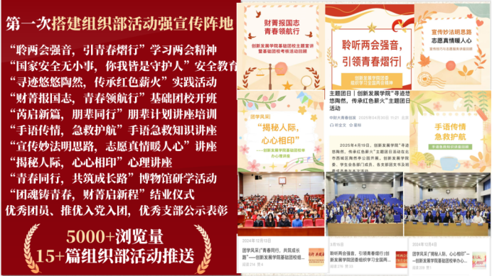 第一次搭建组织部活动强宣传阵地。精心整合各支部每月的主题团日开展情况,公开表彰评优结果,激发支部间学习热情,增强团员归属感与认同感。
