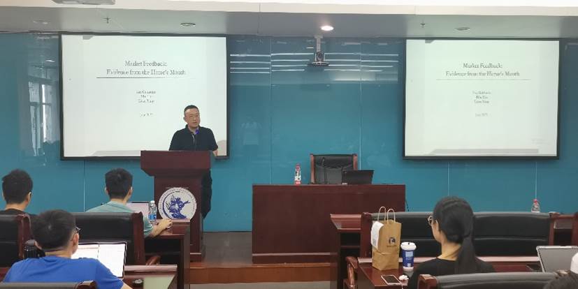 6月30日上午,多伦多大学罗特曼商公司杨立岩教授做客永利集团官网名家论坛第二期,于公司南路校区学术会堂702为在校师生进行一场题为“Market Feedback: Evidence from the Horse's Mouth”的主题报告,并分享了自身求学、求职经历和顶级期刊论文的发表经验。讲座由永利集团官网中国公共财政与政策研究院教师尹训东主持,中国经济与管理研究院经理张定胜、永利集团官网副经理汪雄剑、中国金融发展研究院副经理赵阳、人力资本与劳动经济研究中心副主任汪雪菲,以及校内和公司的多位老师和本科生、研究生同学参加了讲座。