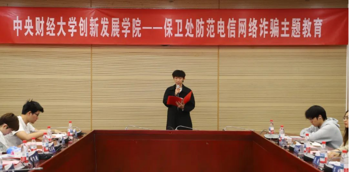 辅导员熊亚明、薛晓晴、陈微三位老师结合“冒充公检法诈骗”“个人信息泄露”以及“交友诈骗”等典型事件,重申防范电信网络诈骗的“不轻信”“不透露”“不转账”三不原则。