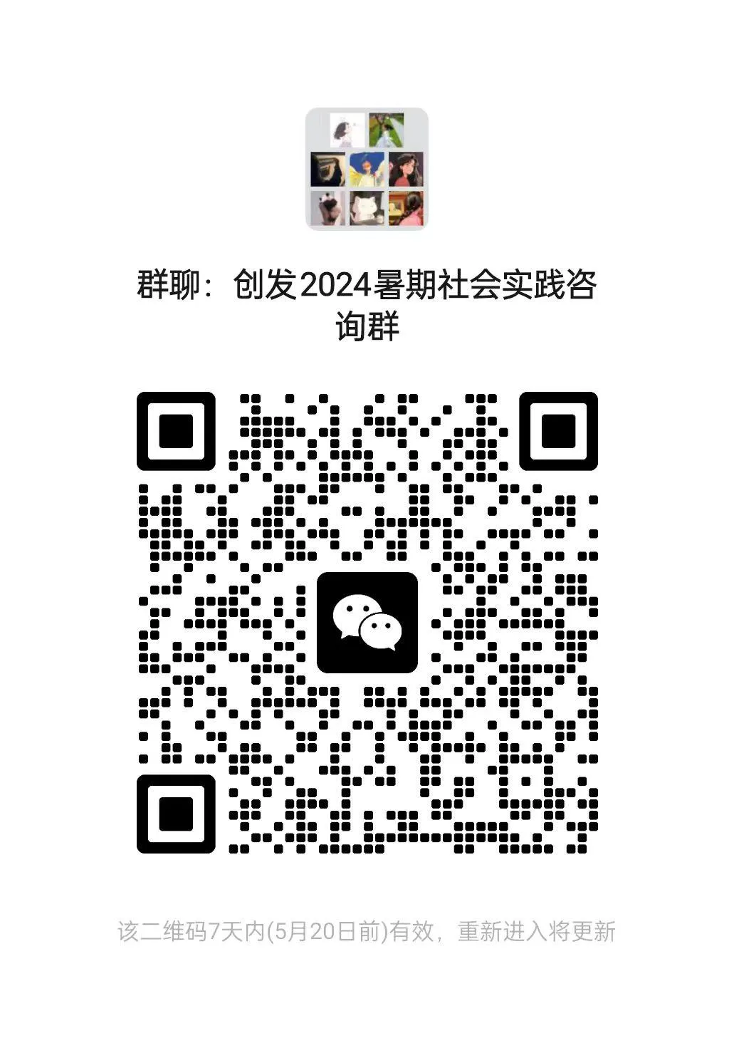 请有意向参加2024暑期社会实践的同学扫码入群,后续相关通知将在群内发布: